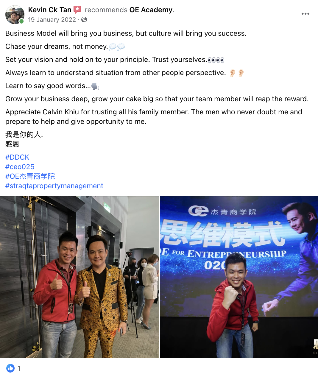 荣获OE杰青商学院,行业讲师总裁路演总季军